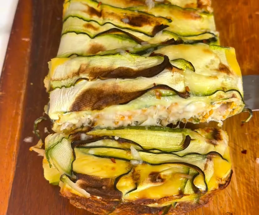 3. Refermez, en ajoutant un peu de fromage entre les couches de courgettes.