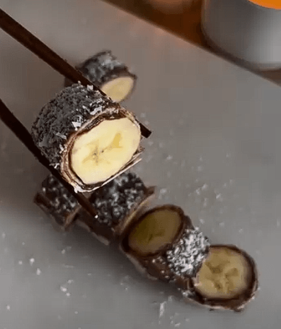 1. Étalez le chocolat noir fondu sur la tortilla.